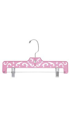 Bring your closet right inside your shop with these fashion forward plastic boutique hangers! Our exclusively designed damask carved hangers come in two colors, and this 15" plastic hanger is perfect for displaying any stylish top, but specifically complements strappy tanks, dresses or lingerie. Made with molded plastic, this ensures the color of the hangers won't fade or rub off over time! Carved plastic hangers sold in cases of 50 at wholesale prices!