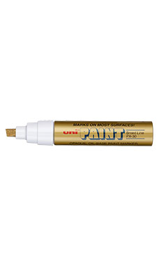 The Metallic Gold Oil Based Paint Marker with 3/8 inch Tip is perfect for marking sales promotions on your windows! Create your own attention grabbing messages with these easy-to-use Oil Based Paint Markers. Acid Free, oil based, and fade proof ink works with most surfaces including paper, glass, metal, plastic, rubber, & wood. Shake well with cap on before use. Depress the tip several times to get sufficient ink flow.