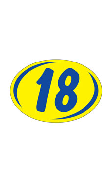 Oval 2-Digit Year Stickers Blue/Yellow - "18"
