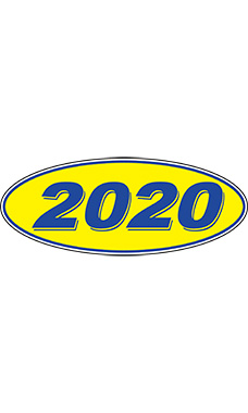 Oval Windshield Year Stickers - Blue/Yellow - "2020"