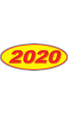 Oval Windshield Year Stickers - Red/Yellow - "2020"