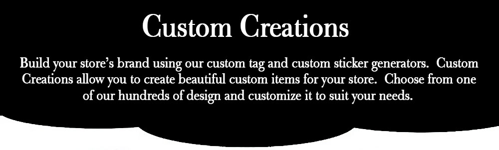 Custom Creations are available for you to customize and brand your business. We have custom options available for stickers, tags, bags, jewelry cards, dressmaker forms, slatwall accessories, wire grid and accessories and display cases. All of our custom products are available with easy ordering and fast turnarounds!
