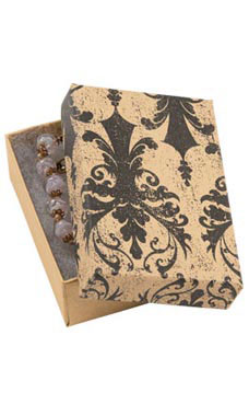 3 ½ x 3 ½ x 1 inch Cotton Filled Distressed Damask Jewelry Boxes
