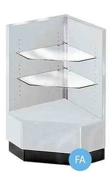 Corner display cases are useful for providing additional storage space while also tying showcases together. This particular Metal Framed Front Corner Filler is designed to match our other display case options. It's constructed from a melamine laminate exterior, with satin finish anodized aluminum framing. Our corner filler features a 90 degree triangular design with 2 adjustable shelves to allow for additional display of collectibles, gifts or trinkets. It's easy to create a custom built-in look with a matching 90 Degree Metal Framed Corner Filler! Crating for secure shipping is included in the price of the case. Ready to ship!