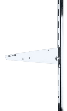 These chrome knife brackets can accommodate several types of shelving for slotted standards.  This 14” bracket features 1” slots/2” OC.  Using this knife bracket will provide a reliable shelf support for your heavier weight products such as stacks of clothing, ceramics, glass and other bulky merchandise items.  Since these brackets can be moved around easily you will be free to design a unique design to fit your company’s style!