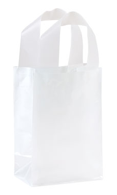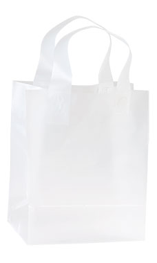 Our clear frosty plastic shopping bags are ideal for retail purchases, special occasions and gifts. The soft frosty look of the bags adds a hint of sophistication and style at an affordable price. These 16" x 6" x 12" bags feature strong handles and a hard board bottom to provide rigidity. They are an obvious choice for bridal, children's retail and holiday sale promotions. These bags are sold in cases of 100.