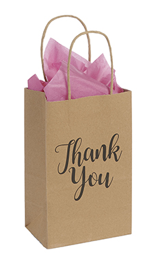 Our Kraft "Thank You" Paper Shopping Bags are perfect for your customers or next event! Not only will they serve your business, but they are made from 70% post-consumer recycled materials and are 100% recyclable