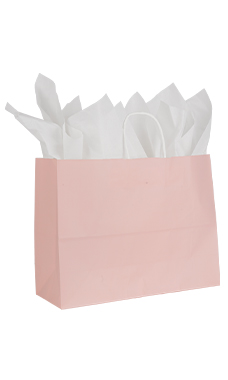 The Medium Pink Paper Shopping bags are a great packaging option for candles, scarves, hats and more! Featuring a soft pink colored exterior with white interior and twisted handles, these durable shopping bags are perfect for boutiques, jewelers and retail stores! Add some tissue and ribbon and you have provided your customer with an instant gift bag! Sold in a case of 100 bags.