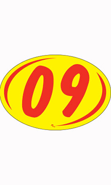 Oval 2-Digit Year Stickers - Red/Yellow - "09"