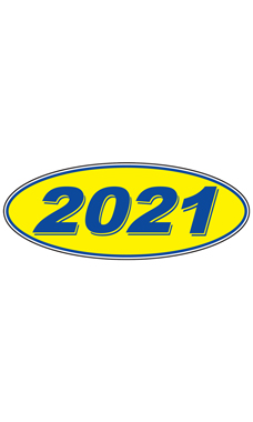 Oval Windshield Year Stickers - Blue/Yellow - "2021"