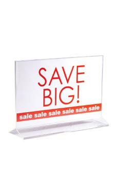 The 5 1/2"H x 7"W Acrylic Top Loading Signholder offers a sleek space saving way to show your signage throughout your store. The top loading sign holders can display messages on both sides of the holder. Place signholders on any flat counter top or sales rack. Display multiple signs for maximum visual impact.