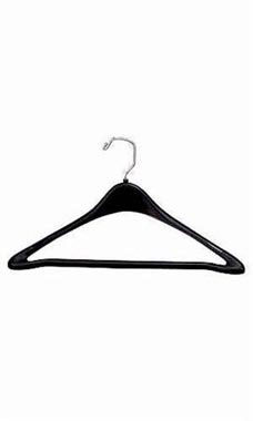 The Black 17" Contoured Outerwear Hangers are a great choice to showcase your men and women’s fashions. The hangers work great with fabric coats, leathers and light jackets. Our hangers are made of injection molded black plastic, each internally ribbed to provide extra strength and durability. The swivel hooks are silver metal finish which provides extra strength and durability.