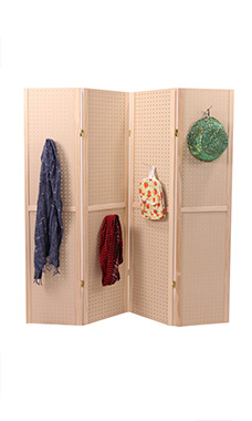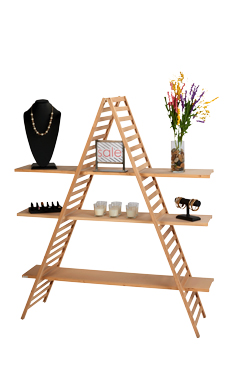 The Three Panel Shelf Displayer is a unique display option that works with a wide variety of merchandise from housewares to home decor. The display is constructed from natural pine slats and features 3 4’L x 9 3/4"W shelves. The panels are pre assembled with brass plated hinges. The display unit is easy to move, set up and store. It can be set up and ready to use in under 10 minutes. The displayer can be left unfinished, stained or painted with latex paint. Check out 3 Panel Displays in a Whole New Way in the Customer Connection section of our website!
