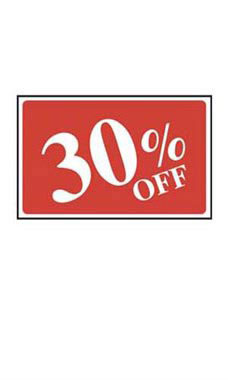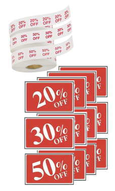 30% Off Self-Adhesive Labels are great for pricing merchandise for sale promotions. Each label features a smooth 3/4" diameter white matte finish with 50% OFF in red print. Labels are sold on a roll of 1,000.