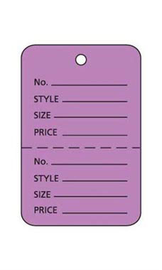 - Features the words No. Style, Size and Price on the top and bottom of each tag