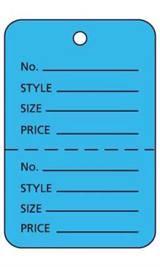 - Features the words No. Style, Size and Price on the top and bottom of each tag