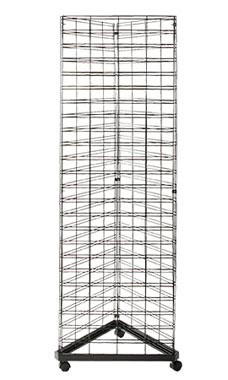 The Triangle Grid Tower is a smart way to maximize your display potential. Wire grid panels rest on top of a triangle base that turns regular wire grid panels into a portable display that rotates. Display fixtures can be added to enable merchandise to be seen on all three sides. The unit is great for displaying a wide variety of merchandise from books to jewelry. The triangle grid tower includes 3-2x6’ grid panels, 9-wire grid connectors and 1-triangle grid base with casters.