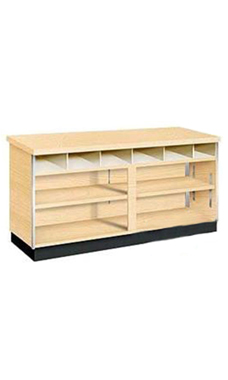The Metal Framed Service Counter with Maple finish is a multifunctional counter that adds a sleek modern look to any retail business. Our case features functional multi-purpose design with adjustable rear storage shelves and bins that can be used to house smaller supplies or bags. Our 34" high counter top surface complies with ADA guidelines.