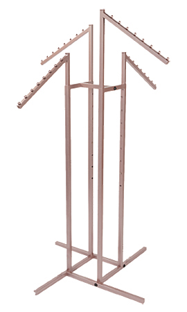 The Rose Gold 2-Way Clothing Rack- Slant Arms is sure to add a chic, stylish element to your showroom. This rack features a rose gold finish with slant arms to highlight merchandise at an incline, showing off each piece of apparel. This rack features push button arms that make it easy to adjust in 3" increments from 48" to 72" tall.