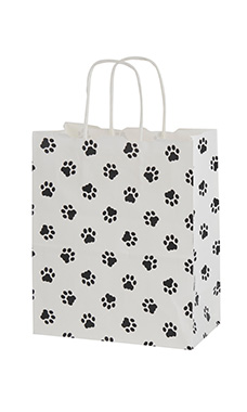 Small - Paw Print Paper Shopping Bags - Case of 100